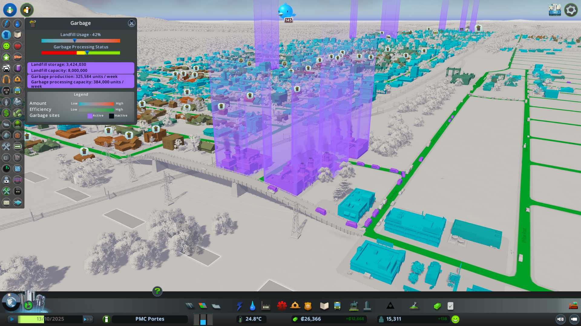 Garbage / trash collection more specifically. In-game you can see garbage statistics when you open info view - garbage tab. The panel shows landfill usage, garbage processing status.