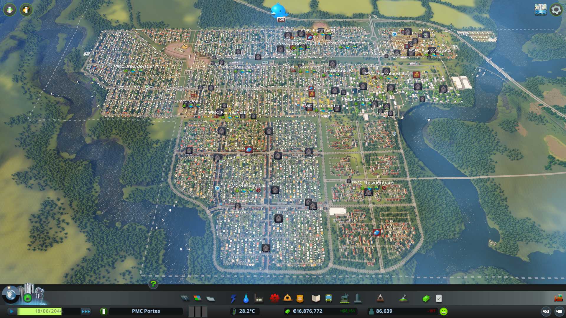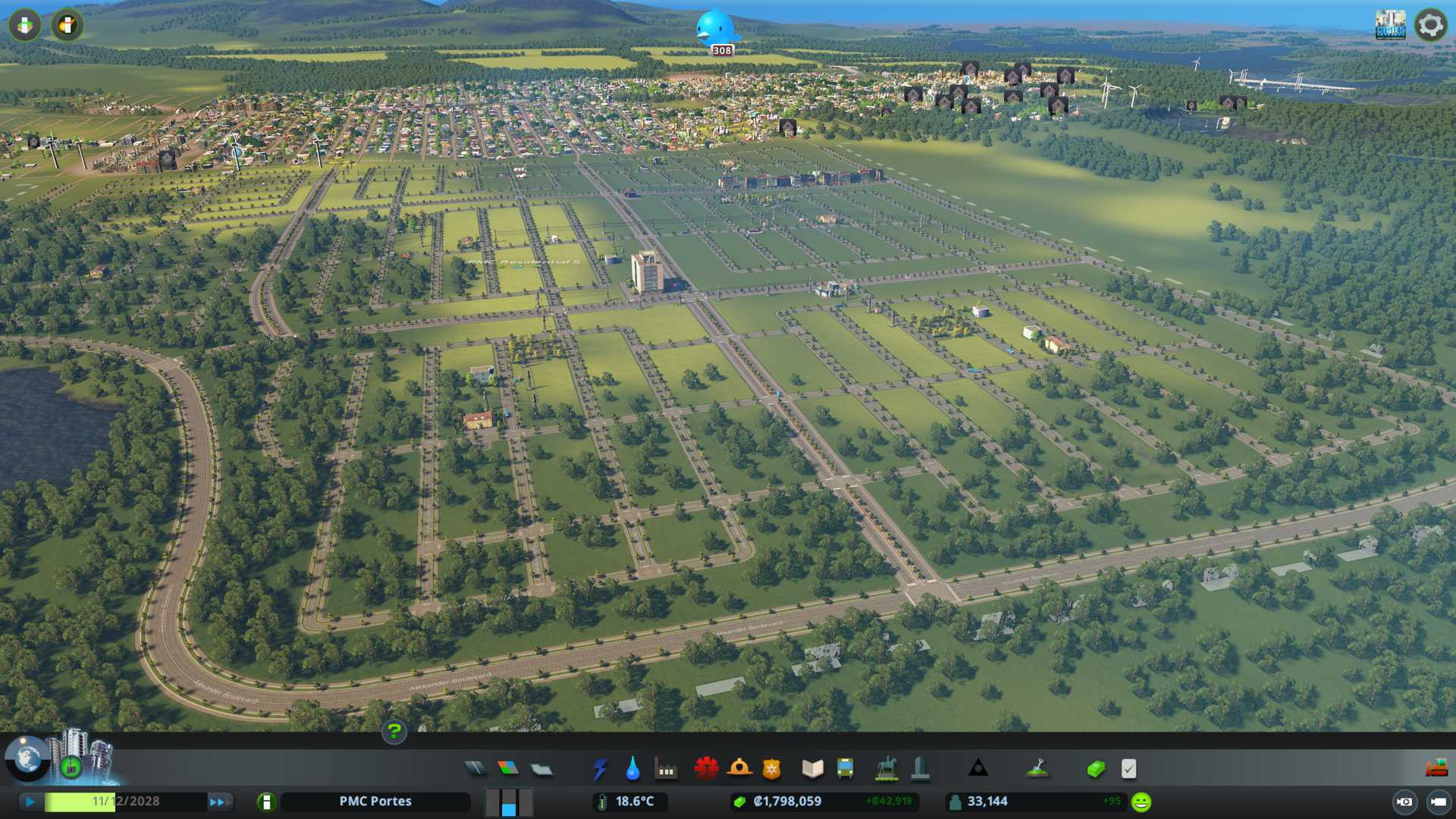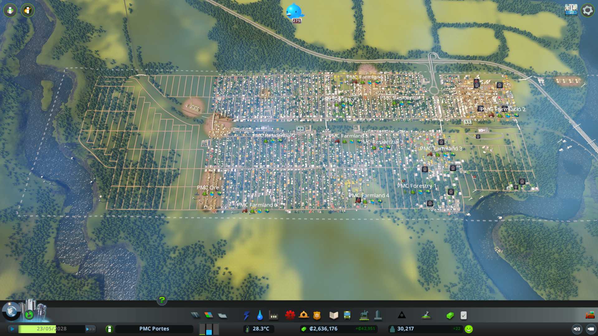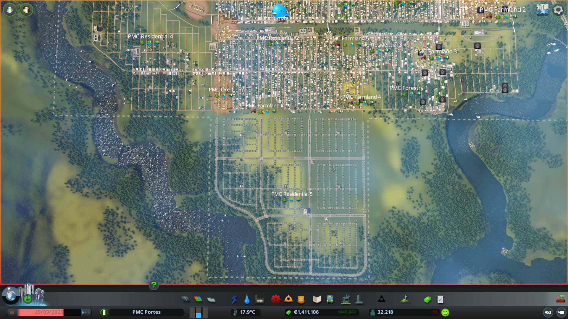 2022-08-04T22:32:00Z New city building day has started, just woke up and finished computer morning chores, not eaten days first meal yet, launched Cities Skylines, loaded savegame up and let it run on 3x speed while I read some industry tutorial, hopefully we could reach our goal soon this morning, maybe even while I'm eating and getting this day started. My fear is that something goes wrong while I'm ALT-TABbed to firefox reading text, so need to constantly TAB back to check heh.