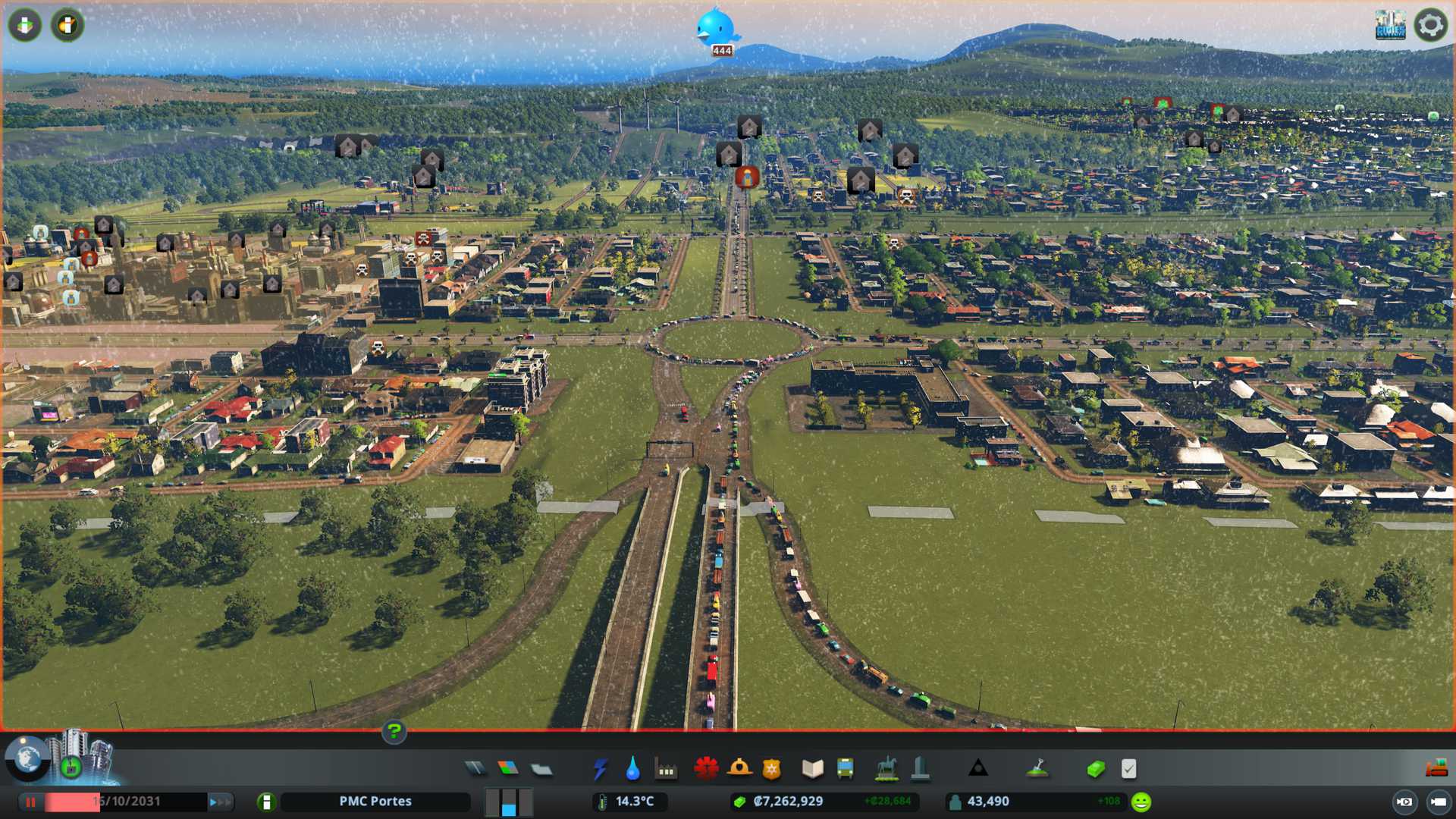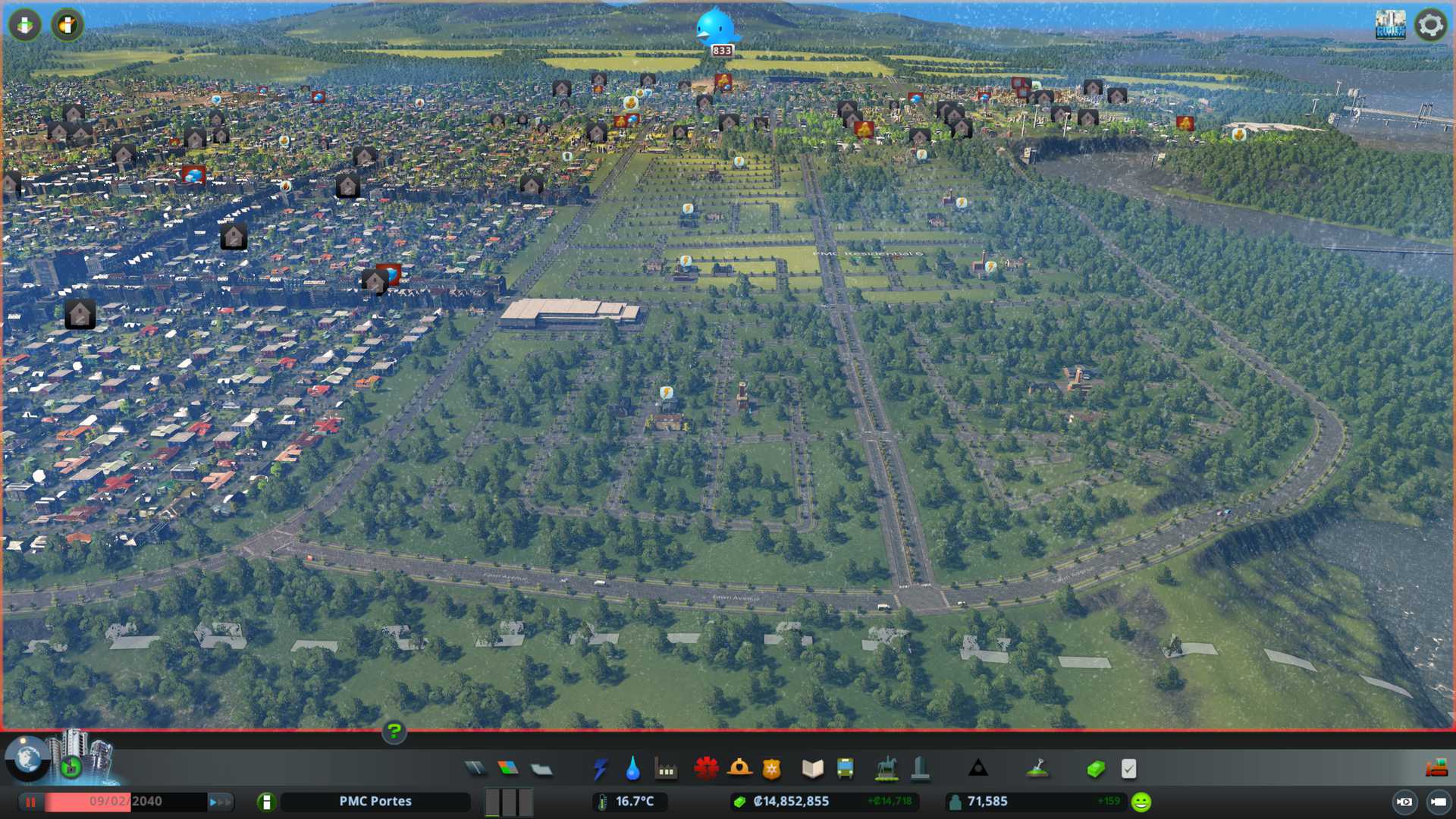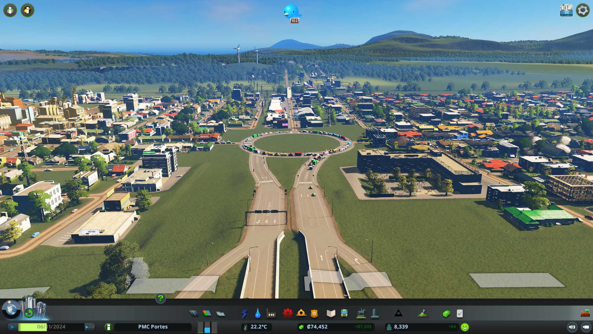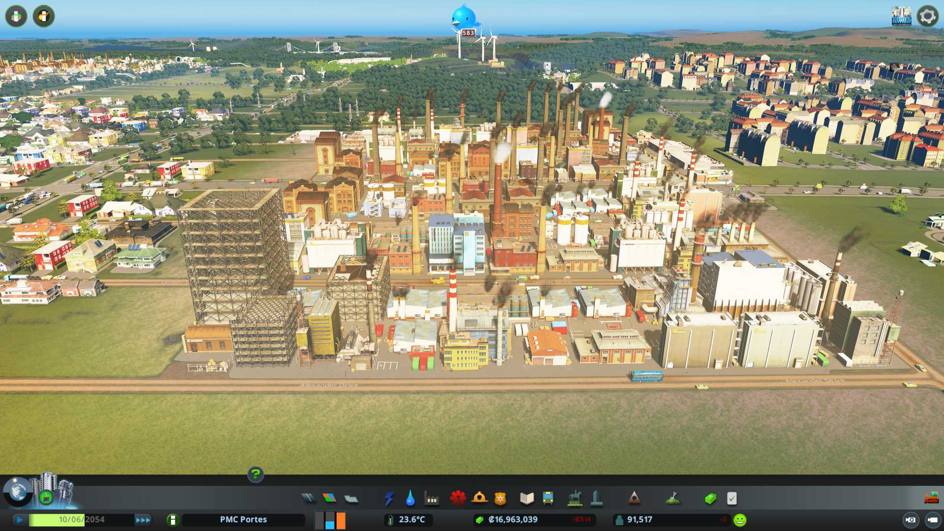 2022-08-04T22:32:00Z New city building day has started, just woke up and finished computer morning chores, not eaten days first meal yet, launched Cities Skylines, loaded savegame up and let it run on 3x speed while I read some industry tutorial, hopefully we could reach our goal soon this morning, maybe even while I'm eating and getting this day started. My fear is that something goes wrong while I'm ALT-TABbed to firefox reading text, so need to constantly TAB back to check heh.