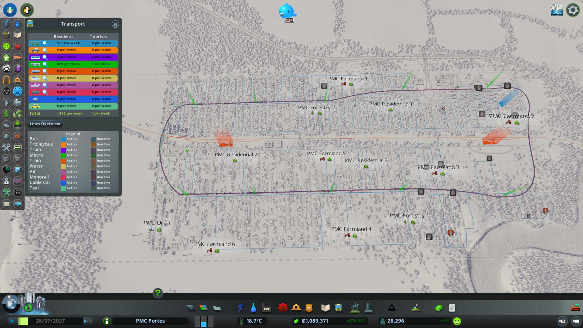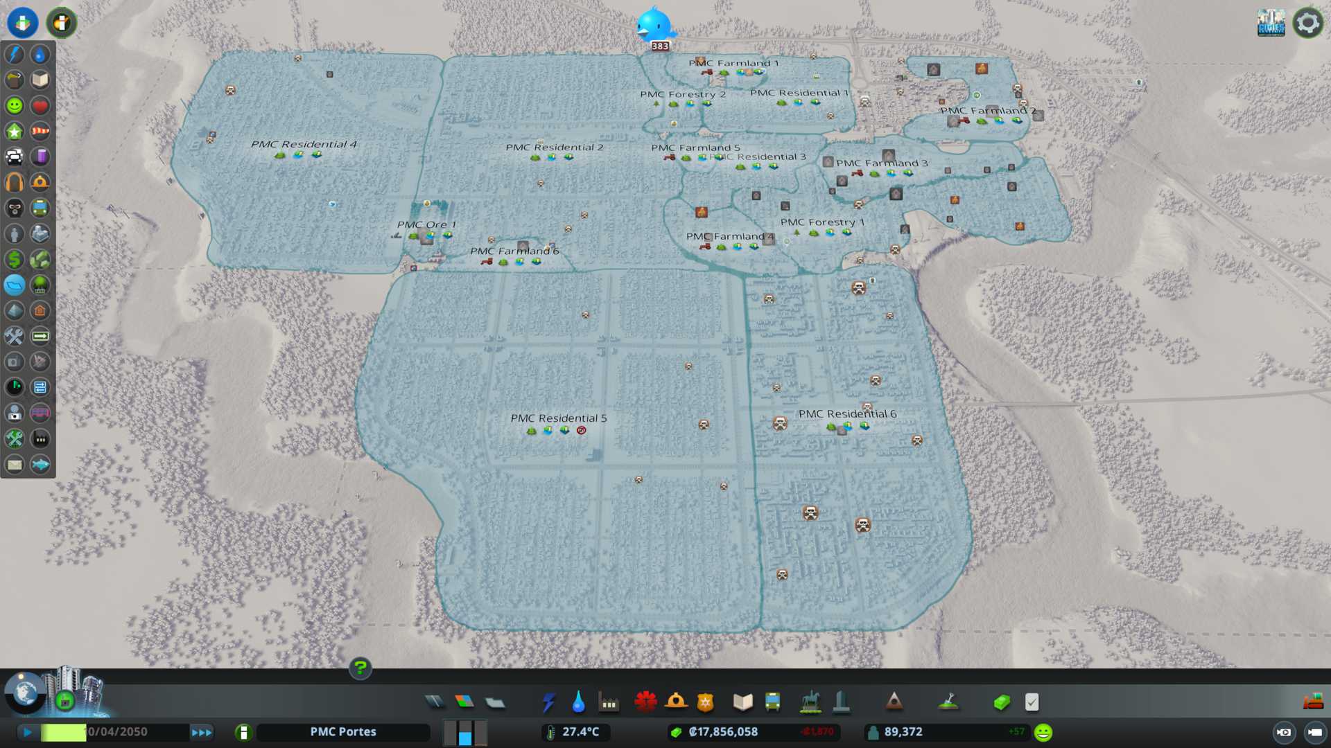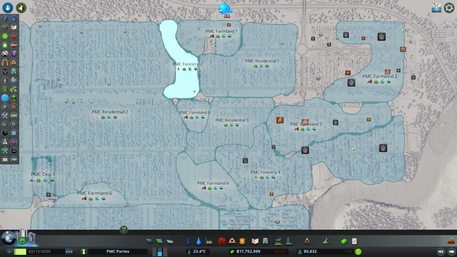 2022-08-05T02:11:00Z Not seeing too much change in RCI, keeps stable 0% residential and industrial with about 50% commercial. Going to discontinue PMC Forestry 2 which is the smaller of the specialized industry forests. I doubt this does much, but again lets see...