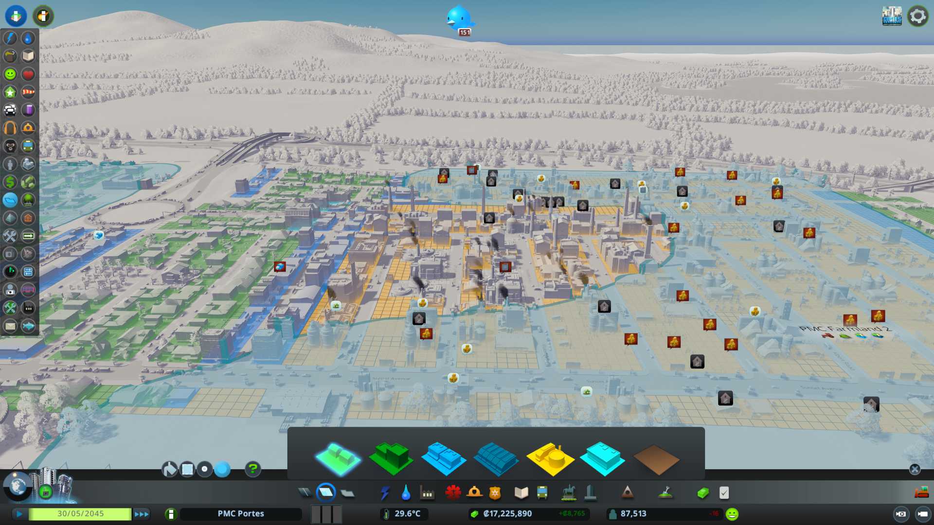 Hmm no change in anything while I was gone, population is 87k so pretty much the same. Same not enough buyers and abandoned buildings icons float the landscape. There is definitely something wrong in this savegame now.