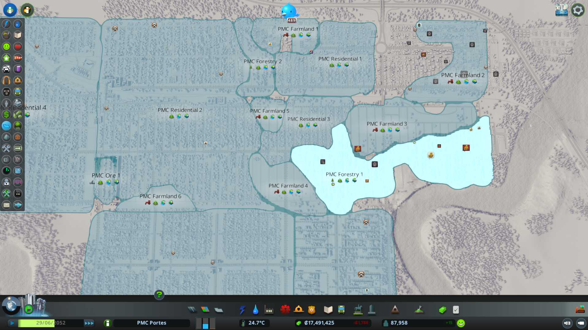 Hmm going to discontinue several specialized industrial zones; PMC Farmland 4 through 6 and let game settle down to see what happens.