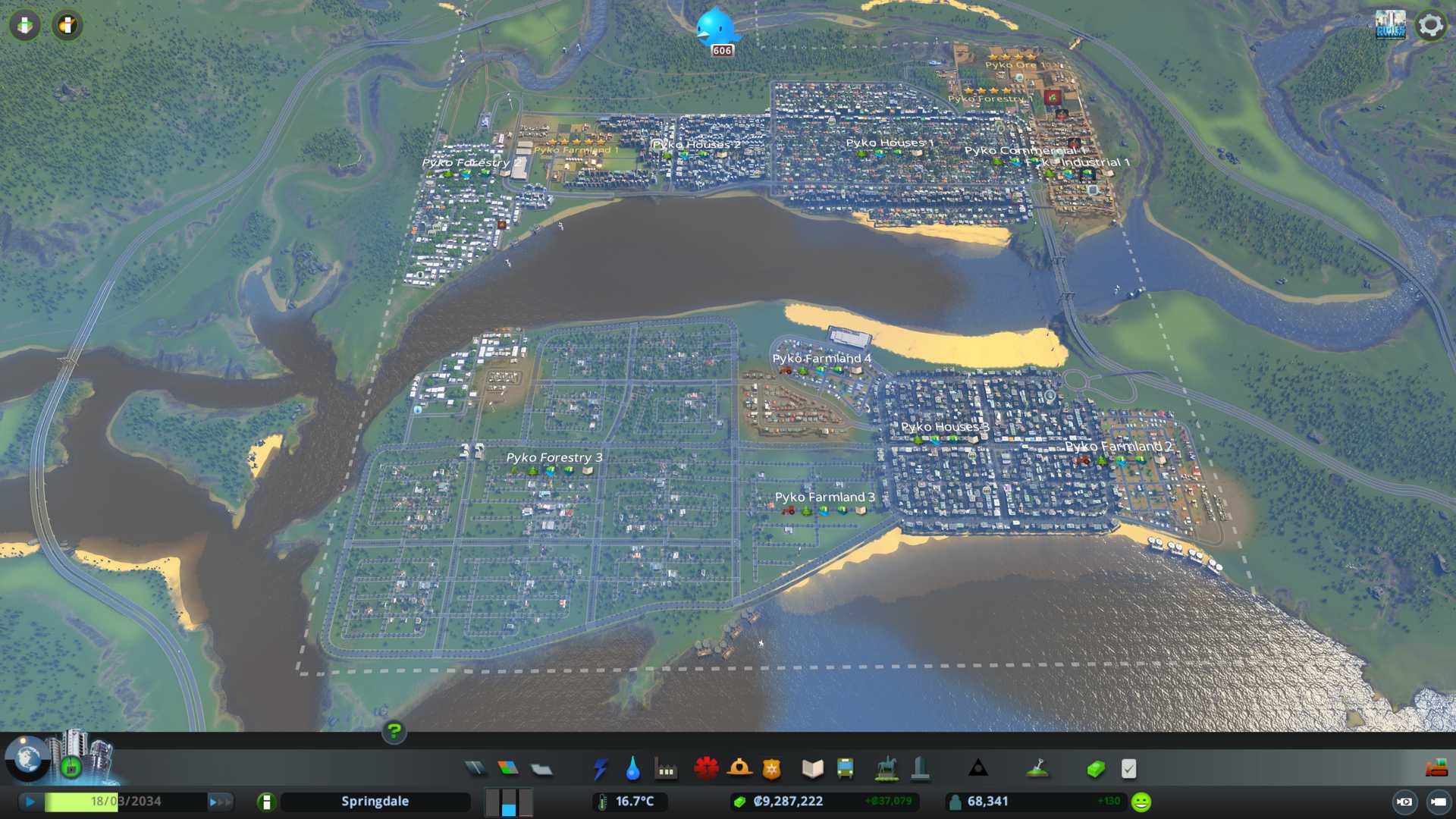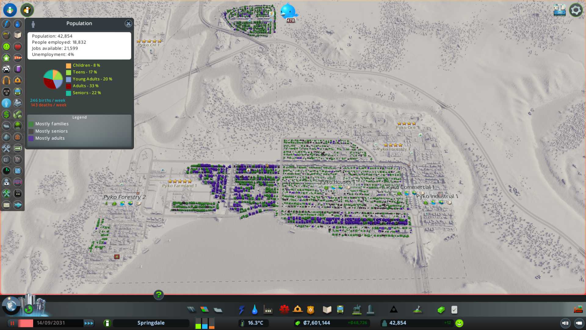 Oh that reminds me, I need to focus on the residential zone growth instead of playing with forestry, ore, oil industry and trains