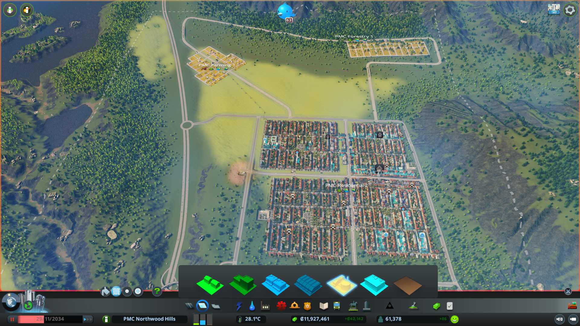 City keeps growing, even though it LOOKS busy there is still plenty of empty property lots for people to move in and build a house, so I'm not going to zone in more residential yet.