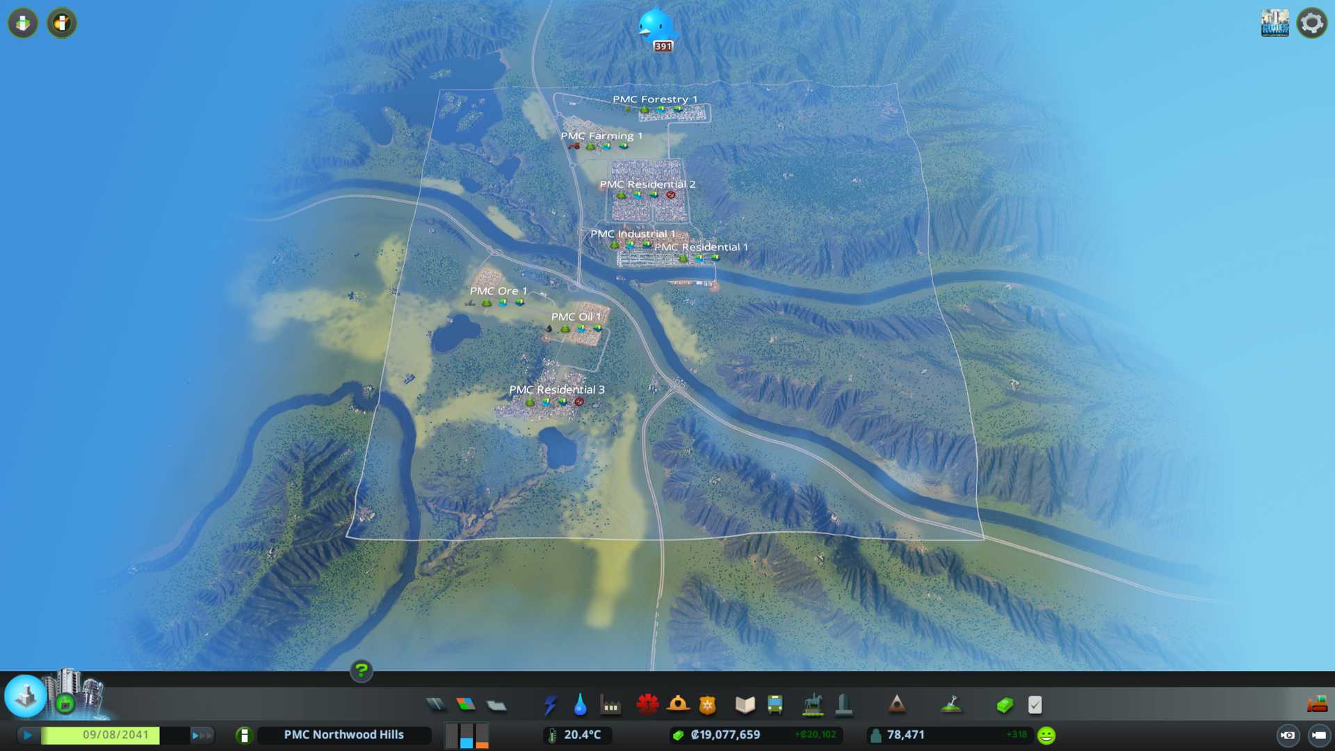 I wanted to move PMC Industrial 1 district to another location and add farming, forestry, oil and ore too, but not sure if that is too much work, it would be mere hours before I would increase 65k population as it is now to the goal.