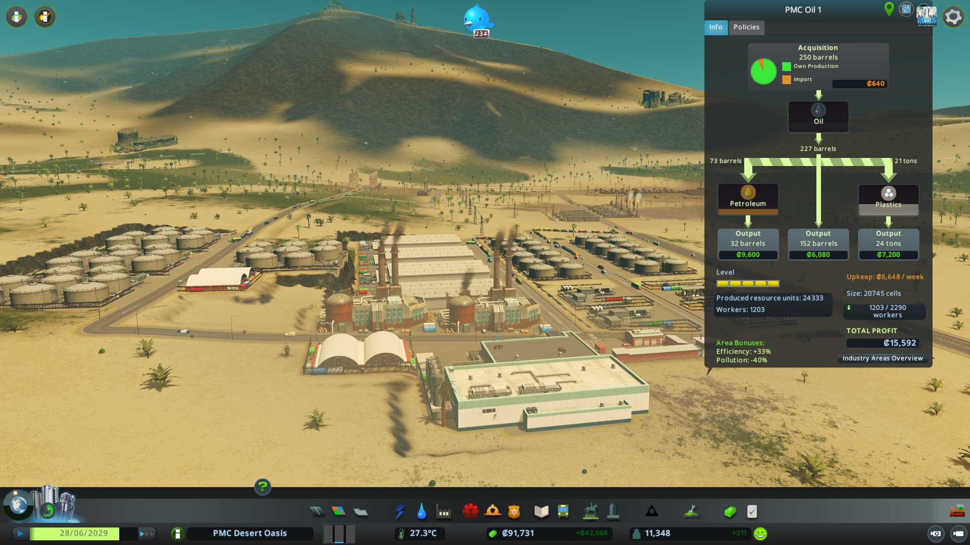 2022-08-13T09:04:00Z Playing around with oil specialized industry is, well harsh way to say it, waste of time, this savegames goal is to reach 100k population as fast as possible and oil or broad terms any other specialized industry is not going to do anything to achieve that goal.