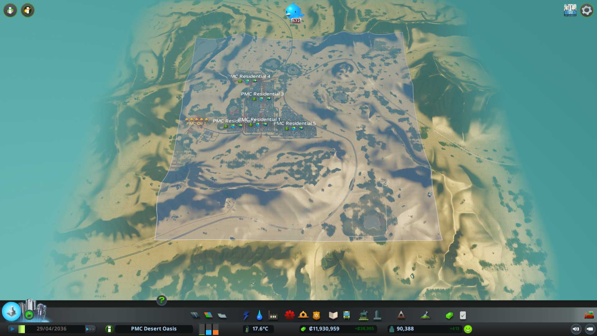 Had to create one more residential area, to push population to our goal.