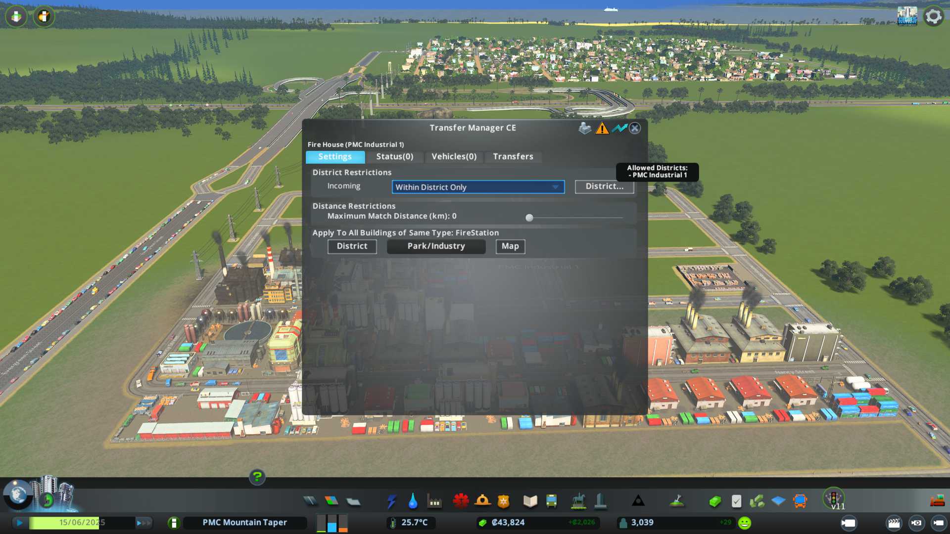 Had a close call in PMC Industrial 2 district, one building almost burnt down, its odd because transfer manager ce had properly been set to fire station but yeah well. Anyways I added access road for the fire guys now, should be OK.