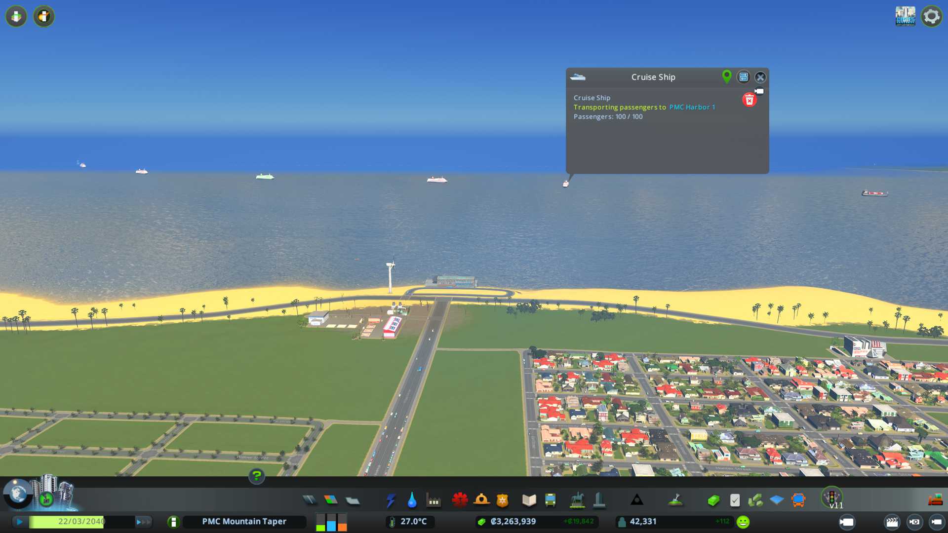 Created passenger ship harbor, this also helps a bit with new citizens moving into our city. Then started to create a new residential district.