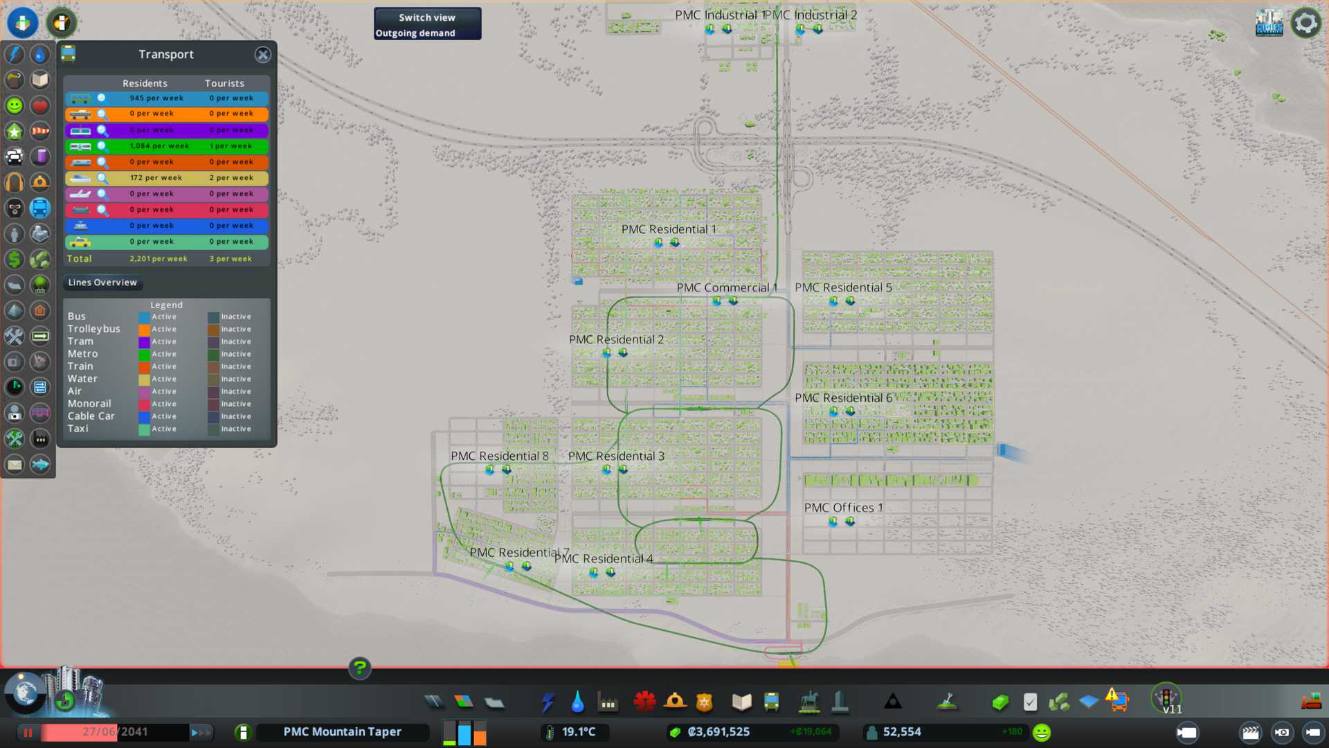 For future savegames a city design tip; place intercity bus terminal right next to a metro station and of course connect your regular bus line to it. That will guarantee good coverage and connections for out of town folks.