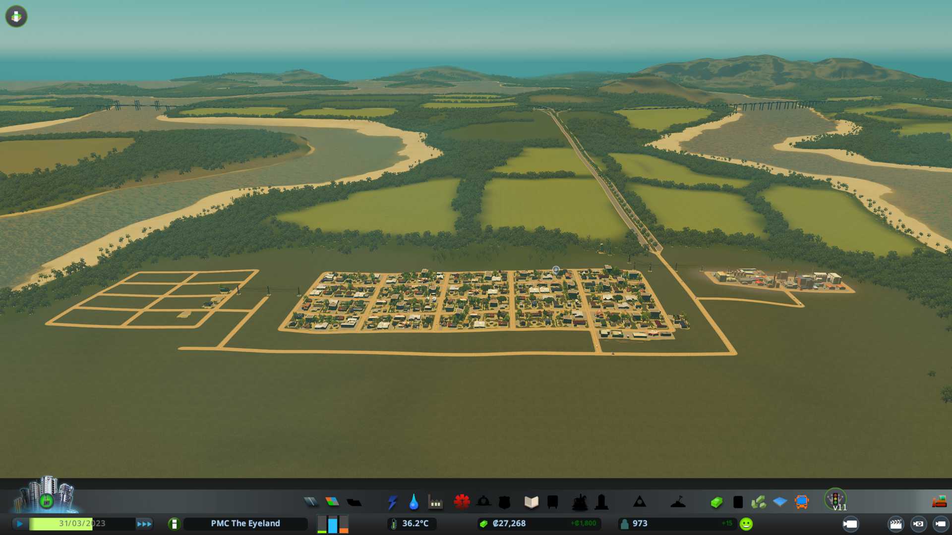 2022-08-27T21:42:00Z Started savegame on The Eyeland, all train outside connections and natural resources, suitable area for building 62%, base theme: temperate.