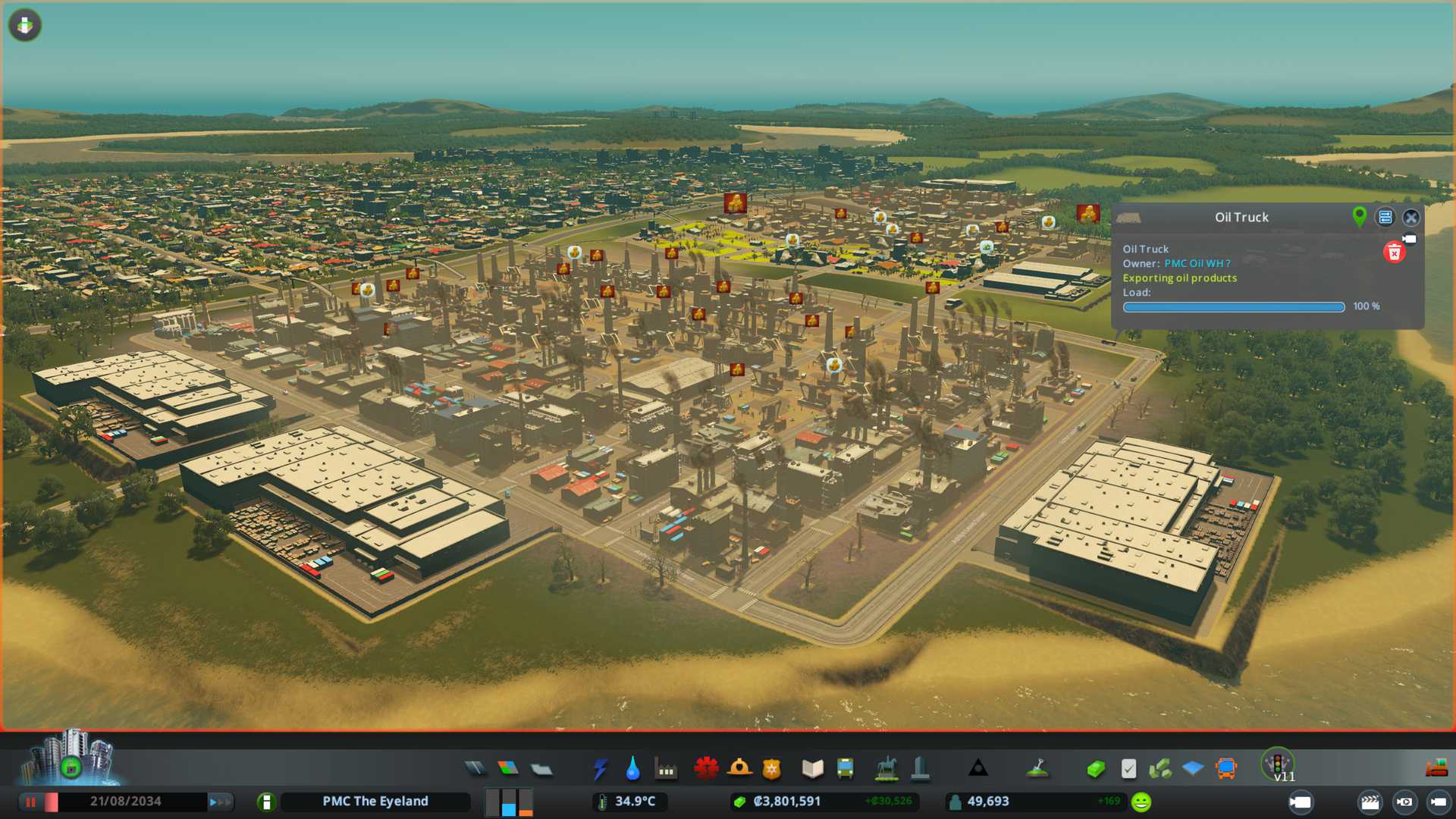 2022-08-28T03:24:00Z PMC Oil 1 industrial district and others too were full of raw materials or products, they were saying "not enough buyers for products", warehouses were full, for example I have THREE large 750 ton warehouses full of shit right now. So I'm testing with PMC Oil 1 district now to set its large warehouse in transfer manager ce to allow outside connection export. Immediately semi-trucks started to deliver oil products to outside connection aka "exporting oil products".