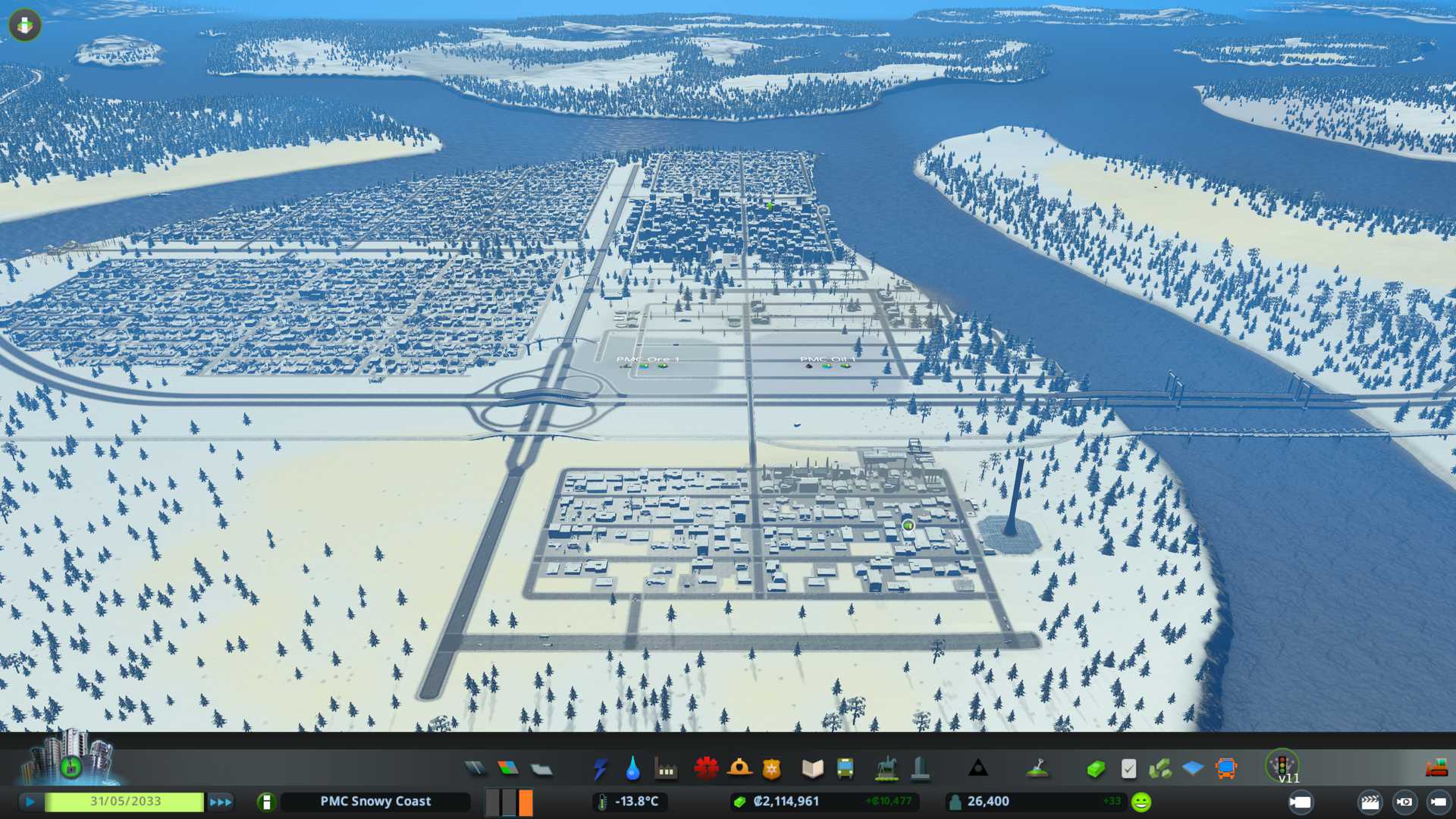 Turned roads, electric and water budget to 50%, we need to save money. First save game for Snowy_Coast_1 file name.